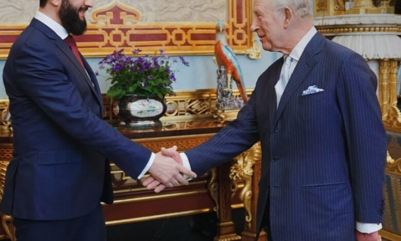 الرئيس الشرع يلتقي الملك تشارلز الثالث في باكنغهام لتعزيز التعاون السوري-البريطاني