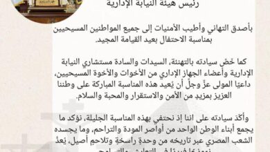 واختتمت السيدة انتصار تهنئتها بتوجيه تحية خاصة للمصريين، متمنيةً لهم دوام الصحة والخير.