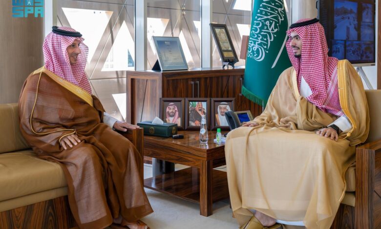 استقبل الأمير راكان بن سلمان بن عبدالعزيز، محافظ الدرعية، في مكتبه اليوم، وزير السياحة أحمد بن عقيل الخطيب. وقد تناول اللقاء سبل تعزيز التعاون في قطاع السياحة بالمحافظة.
