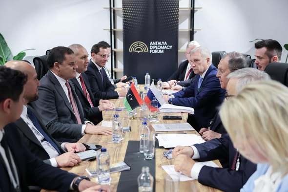 أنطاليا – التقى رئيس حكومة الوحدة الوطنية الليبية، عبد الحميد الدبيبة، بوزير الخارجية الروسي، سيرغي لافروف، وذلك على هامش منتدى أنطاليا الدبلوماسي.