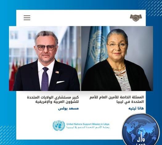 وفي السياق ذاته، أفادت بعثة الأمم المتحدة للدعم في ليبيا أن مسعد بولس أعرب عن دعم الولايات المتحدة لجهود الممثلة الخاصة وبعثة الأمم المتحدة، مؤكداً الالتزام بتعزيز التنسيق خلال الفترة المقبلة.
