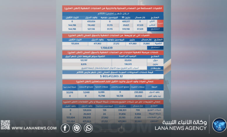 وفي السياق ذاته، أشارت المؤسسة إلى استمرار برامج توريد وشحن المحروقات لضمان استقرار الإمدادات، مؤكدة التزامها بنشر البيانات الدورية لتعزيز الشفافية في إدارة وتوزيع المنتجات النفطية.