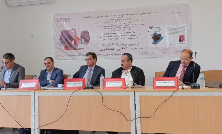 عقدت شعبة القانون العام بكلية العلوم القانونية والسياسية بسطات في المغرب، يوم الثلاثاء، لقاءً علمياً أكاديمياً لمناقشة كتاب “الحقل الديني والديناميات المؤسساتية بالمغرب” للأستاذ سعيد سيتر. وقد شارك في اللقاء أساتذة وخبراء في القانون العام لتقديم قراءات معمقة حول الكتاب.