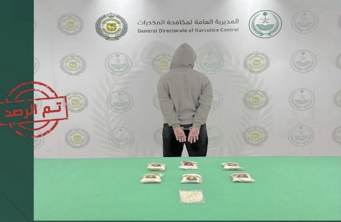 وأفادت المديرية بأنه تم ضبط 6,422 قرصًا من مادة الإمفيتامين بحوزة المواطن الموقوف.