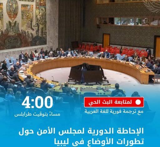 وأفادت بعثة الأمم المتحدة للدعم في ليبيا (UNSMIL) أن الإحاطة ستبدأ في تمام الساعة الرابعة مساءً بالتوقيت المحلي.