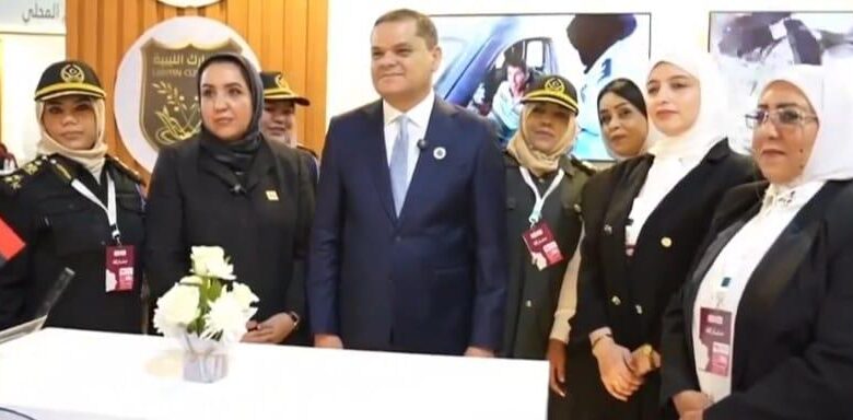 واستمع الدبيبة خلال جولته في أجنحة المرأة العاملة بالقطاعات الحكومية المشاركة في الفعالية إلى شروحات حول دور المرأة في بناء الوطن.