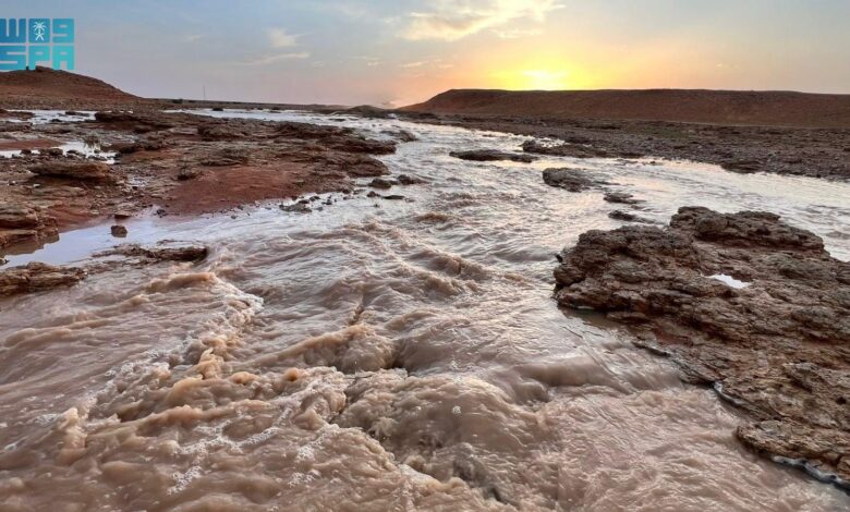 وجرت المياه عبر الشعاب الرملية والصخرية، حاملةً معها الرواسب، مما يعكس سمات الموسم المطري في البيئات الصحراوية. ورُصدت بوادر إزهار النباتات البرية على ضفاف الشعاب، في إشارة إلى تحسن الظروف البيئية.