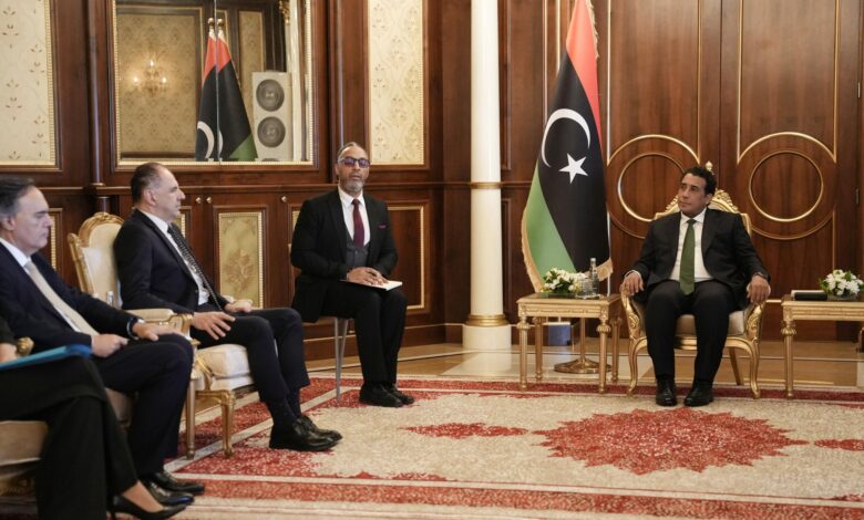 طرابلس، ليبيا – 27 أبريل 2026 (وال) – بحث رئيس المجلس الرئاسي الليبي، محمد المنفي، اليوم الاثنين في طرابلس، مع وزير خارجية اليونان، جيورجوس غيرابتريتيس، والوفد المرافق له، سبل تعزيز العلاقات الثنائية والتطورات السياسية والاقتصادية في ليبيا.