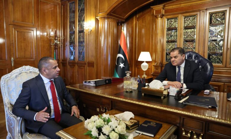 طرابلس، ليبيا – أفاد مصدر مسؤول بأن رئيس حكومة الوحدة الوطنية الليبية، عبد الحميد الدبيبة، اجتمع اليوم مع رئيس مجلس الإدارة والمدير التنفيذي للمؤسسة الليبية للاستثمار، علي محمود.
