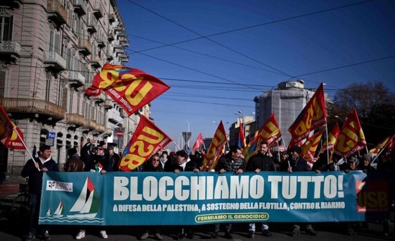 شهدت مدن إيطالية عدة، الاثنين، اضطرابات واسعة في حركة النقل الجوي والسكك الحديدية بعد إضراب دعت إليه نقابة “يو إس بي” العمالية ومنظمات صغيرة احتجاجاً على زيادة الإنفاق العسكري ودعم الحكومة لإسرائيل. وأدى الإضراب إلى إلغاء عشرات الرحلات الجوية وتعطّل القطارات في عدد من المحطات الرئيسية.